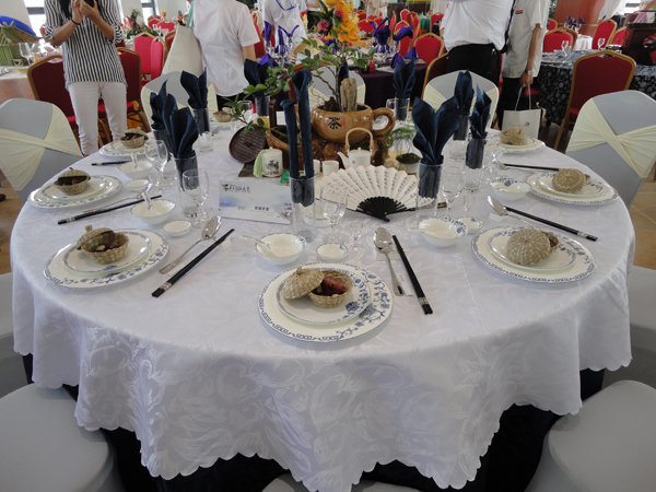 参加摆台比赛的十六名选手各显身手,一桌桌台面经过选手的精心布置,光彩题夺目,金庭镇吾乡山舍五香家宴凌春燕的摆台“碧螺茶香”,异常更加突出,评委、观众纷纷点头大加赞赏,一把手写的书法菜单,精心制作的碧螺春发源地农家第一峰盆景,体现农家乐的草编果篮、文征明的精美小茶具、茶童吹炉的小装饰都充分展现了“碧螺茶香”的主题,色彩搭配素雅,充分体现了苏式人家的书香生活,最终以高分获得此次大赛的冠军。